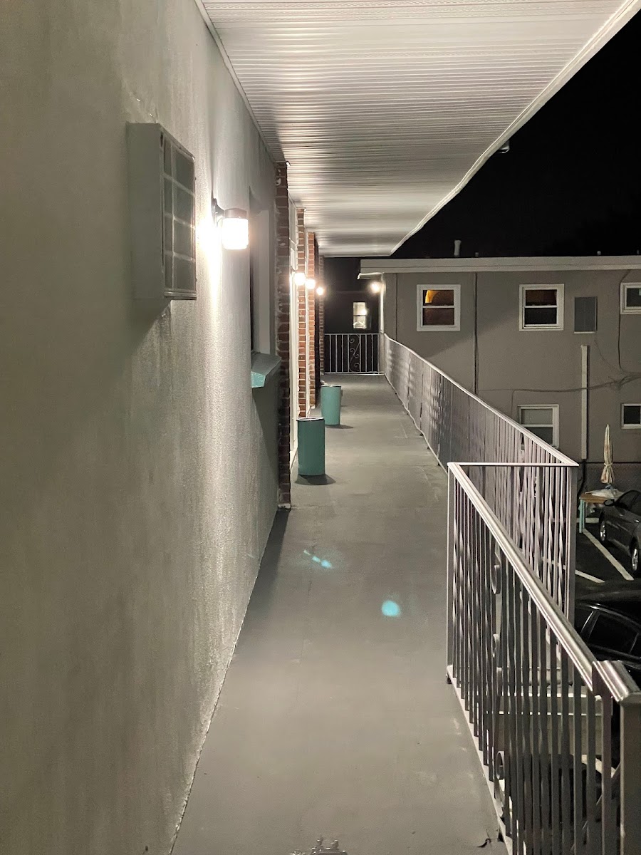 This is a very old school modest hotel. No bells and whistles. HOWEVER. The rooms are very clean and new looking. The location is unbeatable it’s got one of the only unobstructed beach views. The lady who runs the place is the SWEETEST, KINDEST, Most accommodating human ever. 100000/10 on her hospitality. We rented #9 and it has 2 double beds, 2 twin size futons, a full size fridge, and efficient kitchen, and the AC is cold! We lucked out and our neighbors switched their room so we have the entire upstairs ocean front balcony to ourselves. It is directly at the end of the wildwoods sign. Couldn’t ask for more!